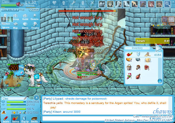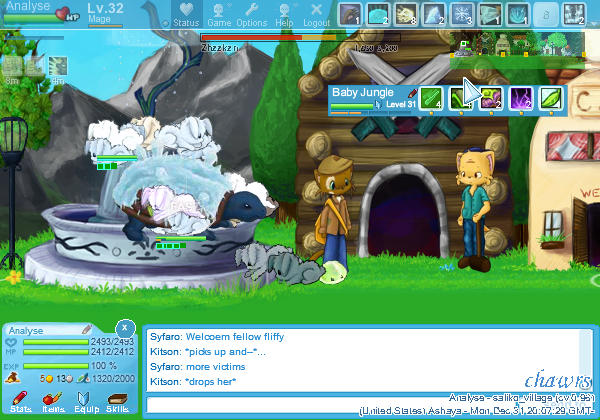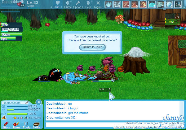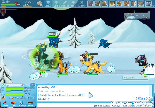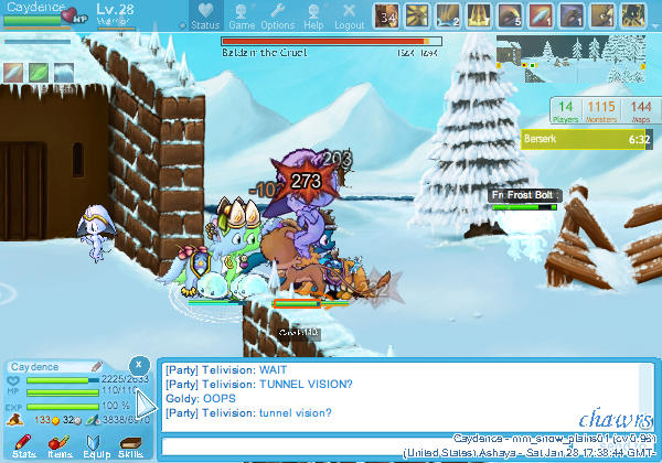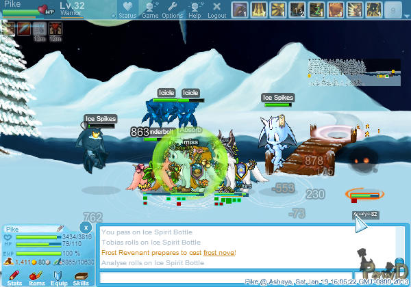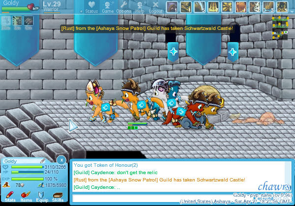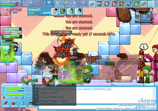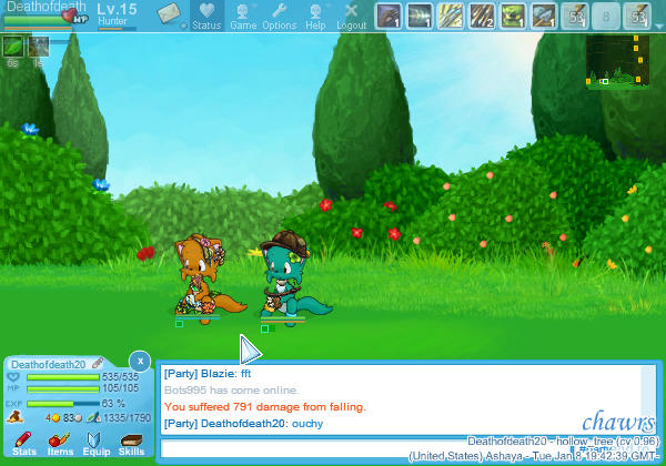- Try not to have interface-elements such as name-tags, equipment windows or similar in important parts of the screenshot (for example, the chatbox at the bottom is okay, but a name tag in the middle would kind of take away from the screenshot. same goes for the /status box, and the cursor - if you can, try moving it out of the window). My screenshot has the status box in the top, and myself and the cursor kind of in the way, so it is not too great here.