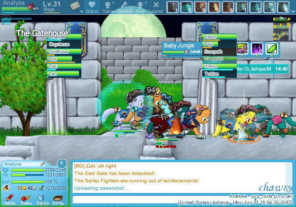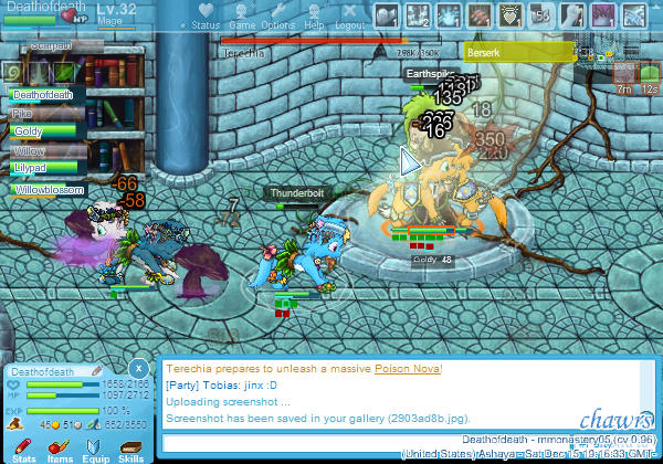 - A good idea is to screenshot "the action" - if everyone is just standing there, it's pretty hard to see what you are cooperating on. Screenshot the fight, a battle. For example, in the screenshot I posted, I'd say that it's not difficult to see what is going on, and it's easy to tell everyone apart - from the monsters attacking, to the two mages fighting.